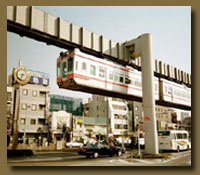 TheShonan Monorail This Monorail is suspended above the roadways, but has beautiful views of the hills and forests. |